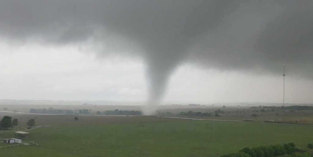 “I saw the trees coming up out of the ground and flying through the air and power lines coming up and laying down over the road,” he said. “I just kind of put my head down covered my head and prayed for the best.”