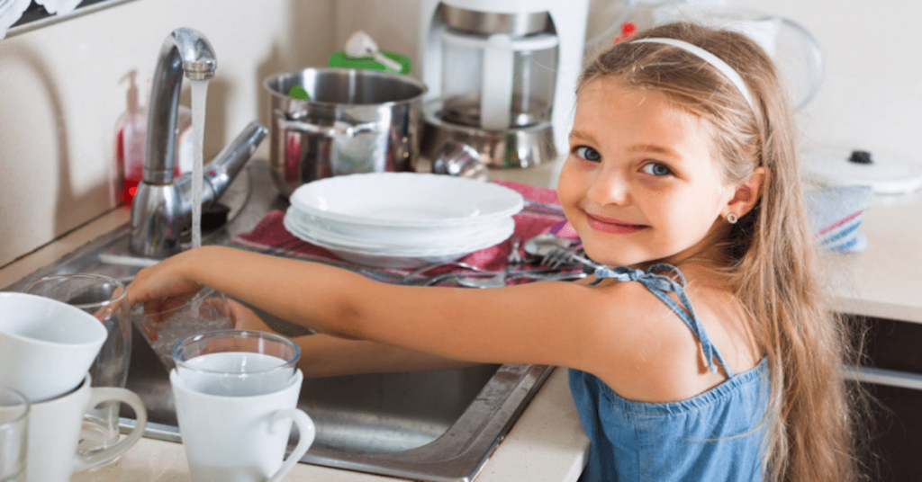 4-5 years – Kids at this age are more developed at motor skills than the younger ones, so chores can be given accordingly, like sorting folding dish towels, sorting clean dishes, helping put away groceries, and helping unload the dishwasher.