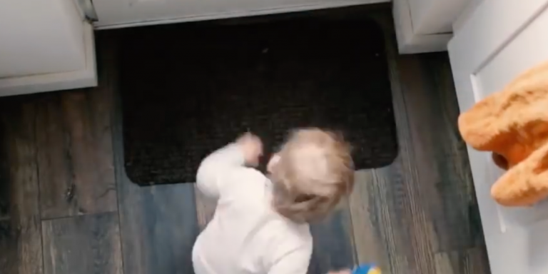 Watch how this toddler puts away his toys