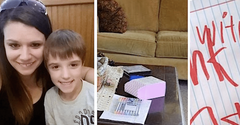 A little boy named Leland Shoemake was just six years old when he began his battle against a rare, yet terrifying, disease. Leland, who is from Williamson, Georgia, contracted a free-living amoeba, Balamuthia mandrillaris, and this led to a serious infection in his brain and spinal cord. It was a tough and grueling battle, and Leland fought hard. But, tragically the little boy passed away on September 25, 2015. His parents, Amber and Tim, we crushed and they returned home from the hospital to pick out clothes for Leland’s burial. It was then when the couple spotted a note sitting on the table in their living room. What they discovered left them in tears! This note was from Leland, and it was handwritten in a spiral-bound notebook. When Amber read the words for the first time, she instantly broke down in tears. The note read: “Still with you / thank you mom and dad /love mom and dad/ it’s a good day.”