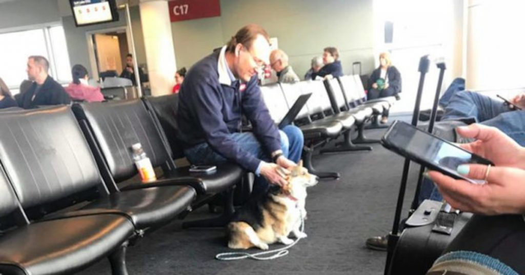 Then one day while Madison and Cora were at an airport, Cora did something that surprised everyone! Madison had let go of Cora’s leash for a short time as she relaxed and had a snack. This gave Cora the freedom to walk up to a man who was sitting in a nearby chair. Madison watched as Cora walked toward him and then sat calmly next to the gentleman. Cora then allowed him to pet her. Worried that the dog may be bothering the man, Madison asked him if he was alright with her company. But, the man made it very clear that Cora wasn’t bothering him at all. Madison said: “I asked him if she was bothering him and with a somber face and watery eyes he said, ‘No, no; I lost my dog last night.’ He scratched behind her ears, patted her on the back and was whispering how cute she was. He took out his phone to snap a photo and she sat directly in front of him facing him and staying perfectly still for it.”