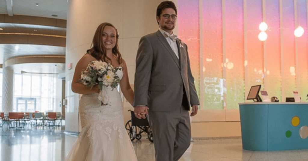 So, they decided to pay a special visit to the hospital who cared for her when she was a teen on the big day. Dr. Fahner and Kierstynn’s pediatric oncologist welcomed the couple into the hospital, where they posed for photos in front of the lobby’s mural.