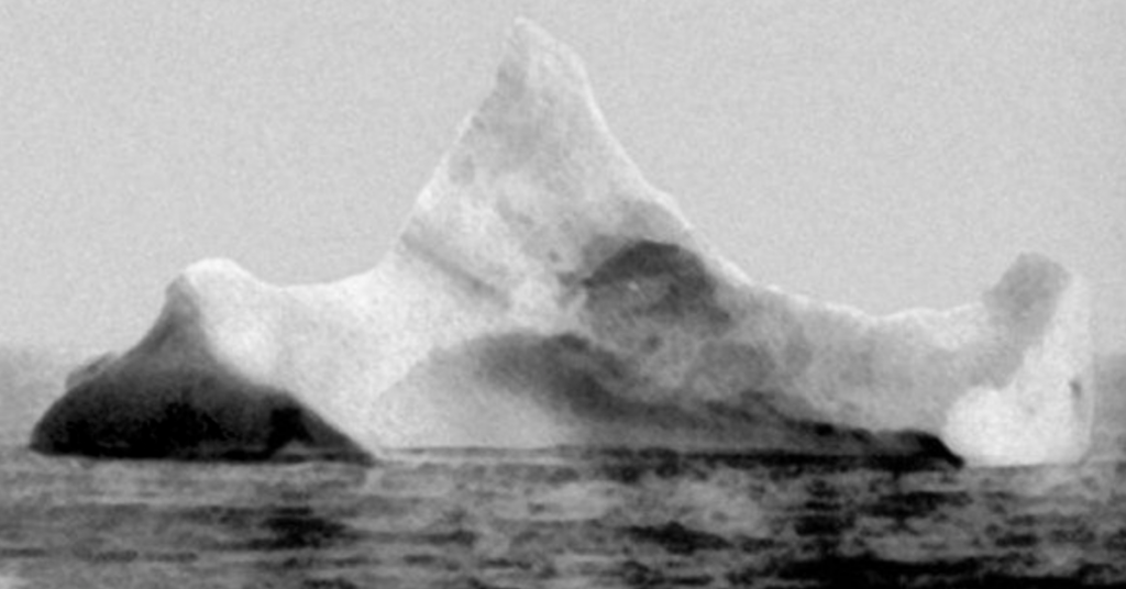 This is a photo of the iceberg that was believed to be the one that the Titanic hit. It doesn’t look very large, but as the saying goes, “is just the tip of the iceberg.” The damaging piece was below the water.