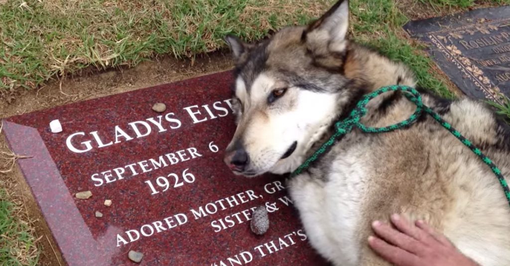 A video, posted on YouTube shows a dog lying on the grave of his owner’s grandma. She and the dog were close, and the dog is clearly upset.