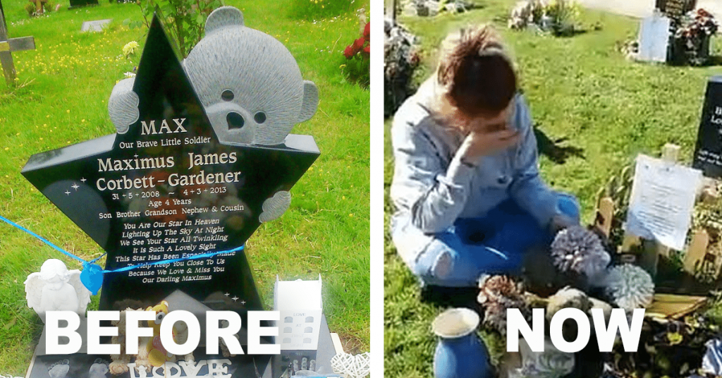 The worst nightmare for a parent is to lose their child. Max Corbett-Gardener, from Malvern, Worcestershire, England, was just four years old when he passed away in 2013 due to complications with his epilepsy. Max’s mother, Jo Corbett-Weeks, spent some time saving close to $4,580 in order to give her son a special headstone in the cemetery: something that would reflect the kind of special kid he was. She chose a star-shaped headstone that is being hugged by a teddy bear.