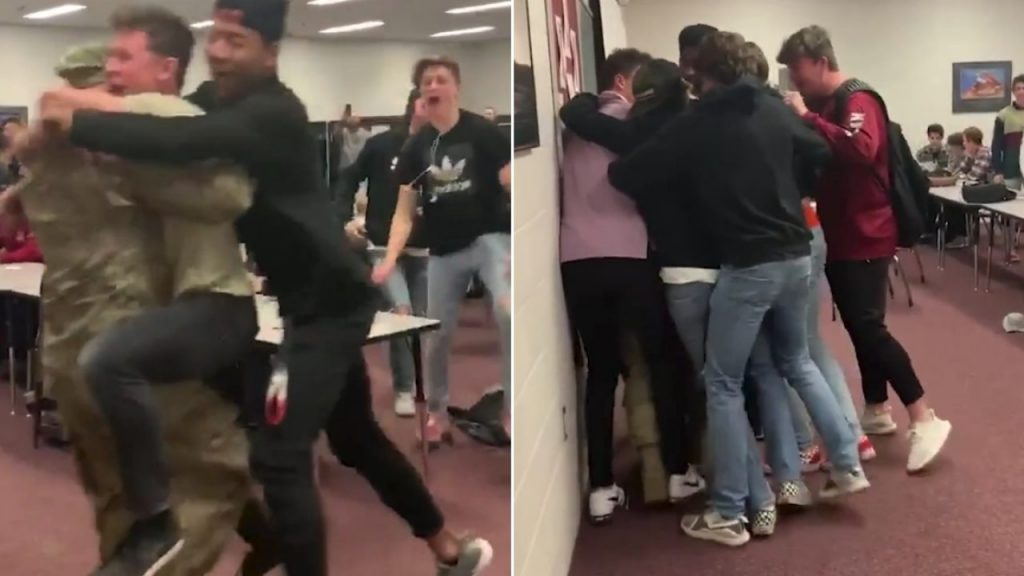 Student athletes in Layton, Utah, were overcome with emotion when they were surprised by their incredible coach with an early homecoming from his Afghanistan deployment. Andrew Olson teaches history at Northridge High School and has been in the school system for about three years coaching football and basketball. Olson told his students in the fall of 2018 that he would soon leave to serve his country as a captain in the Utah Army National Guard in Afghanistan for about a year. The announcement by Olson left a lasting mark on the boys who remember without fear or hesitation how their coach accepted the deployment.