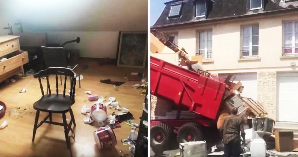 The property in Rozoy-sur-Serre in Aisne, France had a family that simply didn’t take care of the place. They hadn’t paid their rent for 14 months and after moving out, they left behind furniture, clothes, trash, pet waste and more.