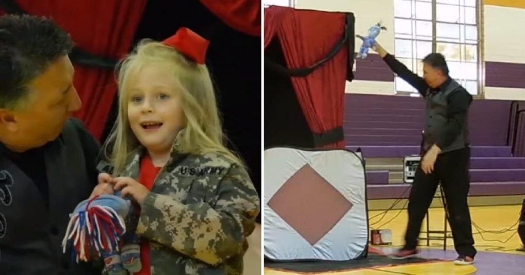 Addison’s parents are in the military and were away from their little girl while on duty. Addison carries around a little doll with her to remind her of her mother and she calls it her “Mommy Doll”. The magician asked Addison to step onto the gym floor. Next, he asked her to take a few steps back as he made his preparations for the next trick. He then throws her “mommy doll” into a collapsible set of boxes and what appeared out of them had everyone cheering. When her mother, Julia, stepped out of the boxes the look of absolute surprise on the girl’s face was just adorable. As the magician points towards his assistant, he slowly changes into Brian Woodburn, Addison’s father. Little Addison was overjoyed to see her parents return. If this sweet little story did not move you, then I don’t know what will! The members of the army sacrifice so much for our sake. They stay away from their friends and family for our safety. This story not only reminds us of the hardships faced by the military but also shows us their “Human side” that we don’t get to see often.