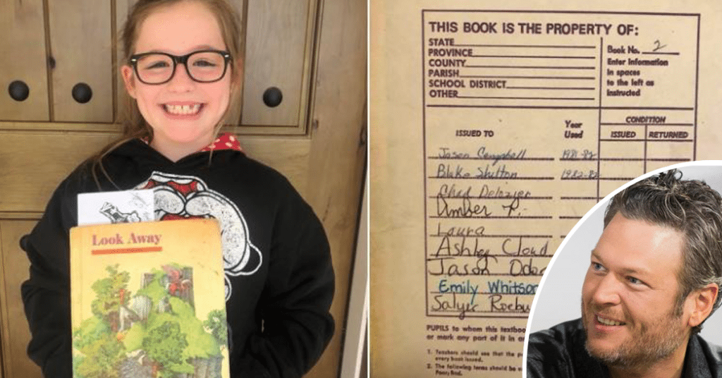 At the point when 6-year-old Blake Shelton went to class in 1982, the future country megastar was given a nearly shiny new course book to learn from. Over 35 years after the fact, the same book passed down to a first grader in 2018.