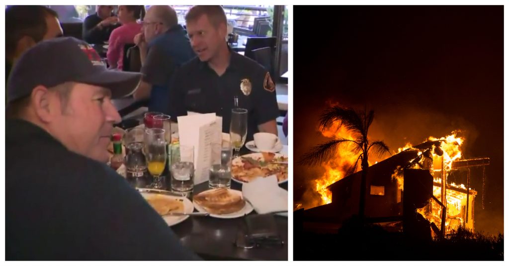 A news reporter for KTLA described the event, “I have to tell you, it’s so heartwarming. We’re seeing firefighters, sheriff’s deputies coming in right now, and people start clapping and cheering for them, and CiCi’s is giving them free meals — hot meals — after all of their hard work today.”