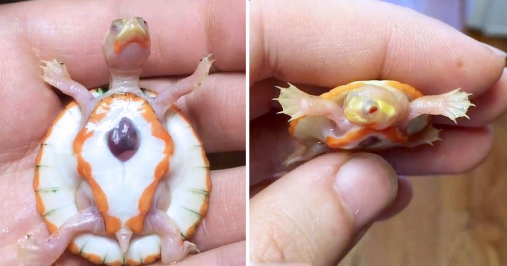 A turtle breeder’s friend, Mike Aquilina, told him about a small baby turtle that needed a home. Mike was willing to step up and take care of her, but nothing prepared him for the one-of-a-kind reptile. Not only is the adorable pink-bellied side-neck turtle albino, but she was also born without a heartbeat-such a rare condition among animals that the veterinary community has not yet given it a medical name. The rare condition is called ectopia cordis in humans. According to British Medical Journal Case Reports, it’s a “complete or partial displacement of the heart outside the thoracic cavity.”