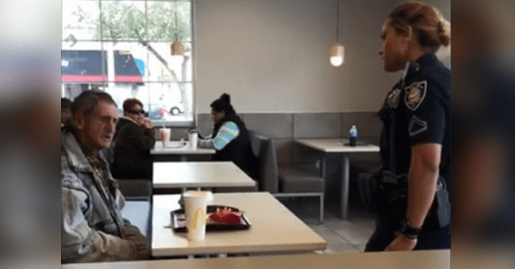 A video stirring on social media shows police in Myrtle Beach, South Carolina asking a homeless man to leave a McDonald’s after another patron bought him a meal Wednesday morning, according to WMBF.