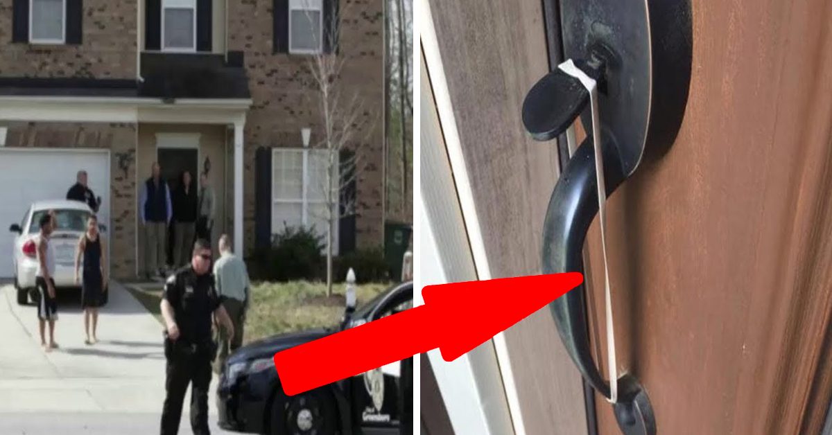 Facebook post from a woman worried that she had just narrowly escaped a home invasion attracted a lot of attention. The post, from Kim Fleming Cernigliaro in Tatum, Texas, describes an attempt to disable the latching mechanism of her front door by wrapping a rubber band around it. The post reads: