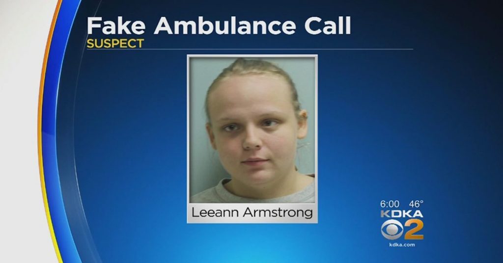 The 25-year-old, Leeann Armstrong, was desperate to get a ride back to her home in Greensburg, so she decided to fake the entire scene to get an ambulance to bring her to a Westmoreland County hospital. Armstrong then told police that she was stranded in Latrobe and had spent the night outside. Police then say they say she called the Mutual Aid Ambulance Service and faked a medical condition. “The next morning, she just called an ambulance and said she was having difficulty with a pregnancy,” Capt. Robert Stafford of the Greensburg Police department said.