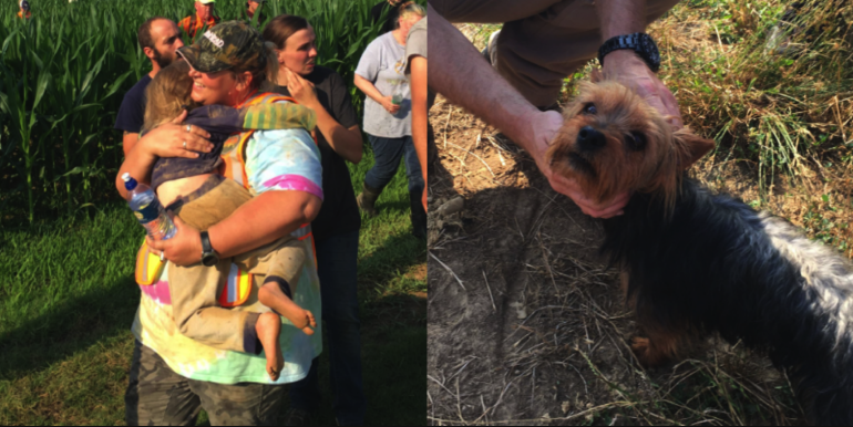A mom called 911 after her daughter wandered into a massive cornfield. Timberlyn Merritt is a busy stay-at-home mom. Her three-year-old daughter, Remy, is always on the go, and her one-year-old Yorkie is never far behind. Merritt says she left Remy on the swing set for just a minute and when she came back out, Remy was gone, and so was their dog Heath. More than 100 people joined in the search, combing through the 8-foot high corn stalks. But Remy was not alone. Heath never left her side.